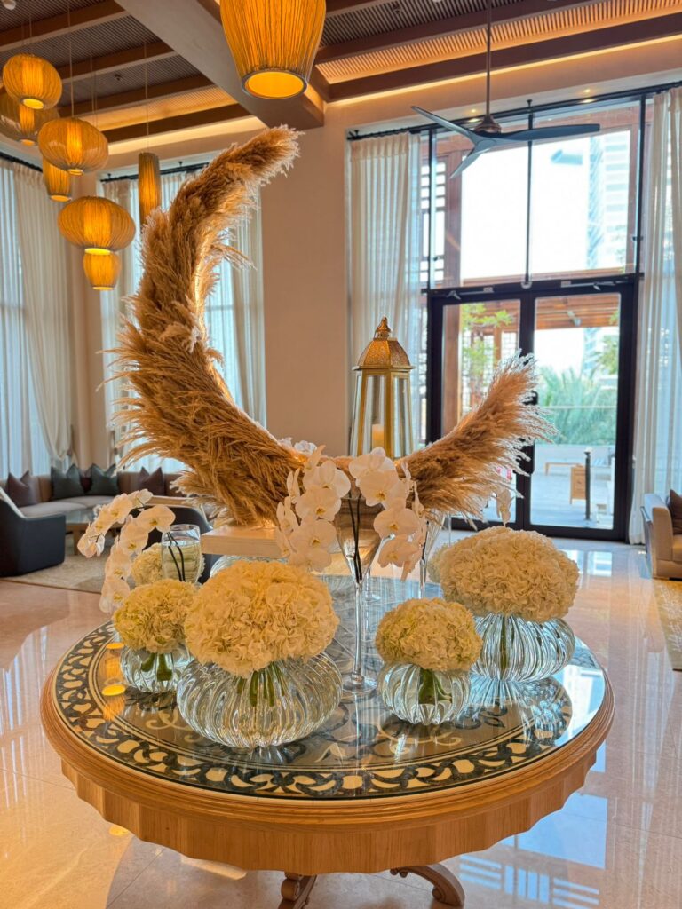 Elegant floral designs for weddings, including bridal bouquets, floral arches, and venue decorations.